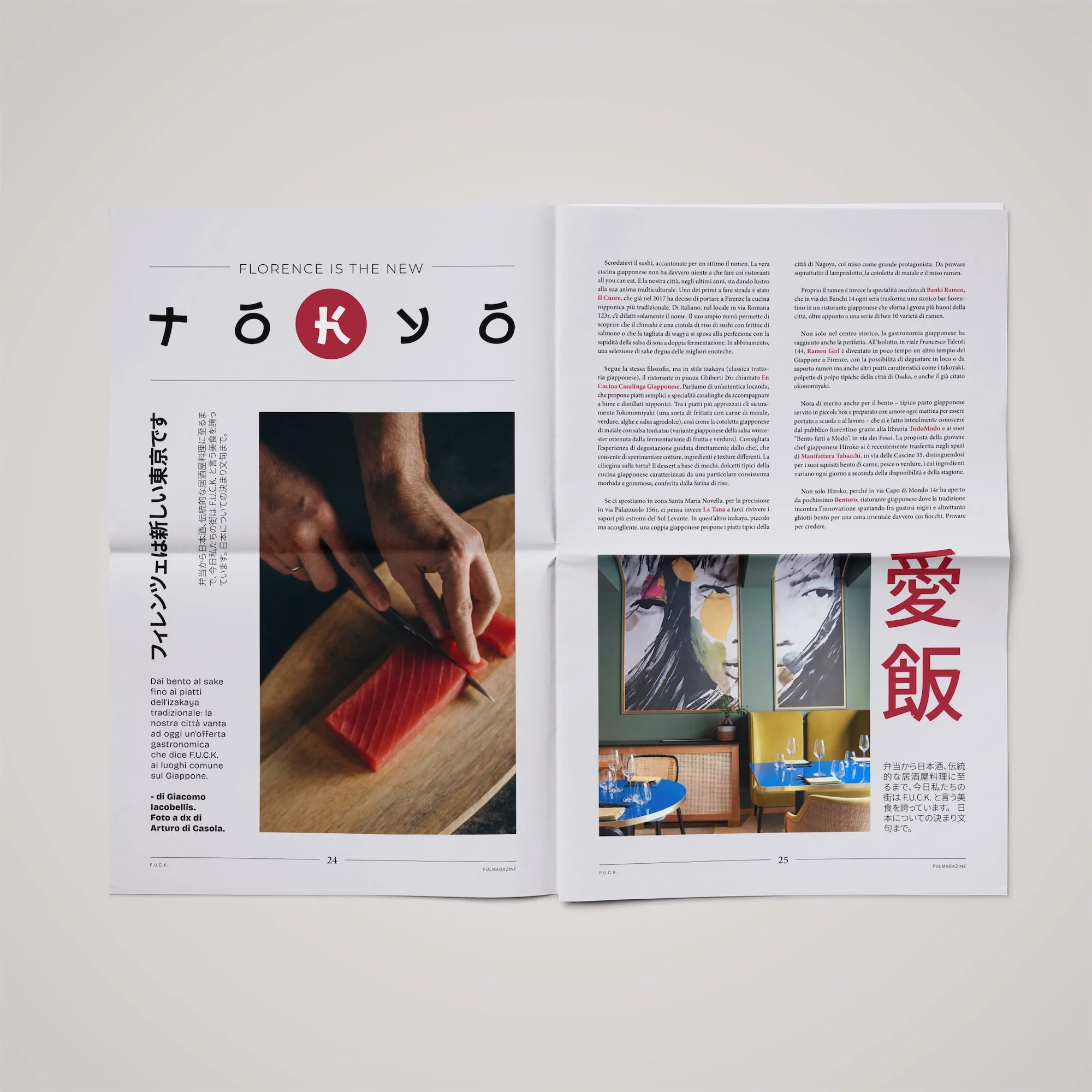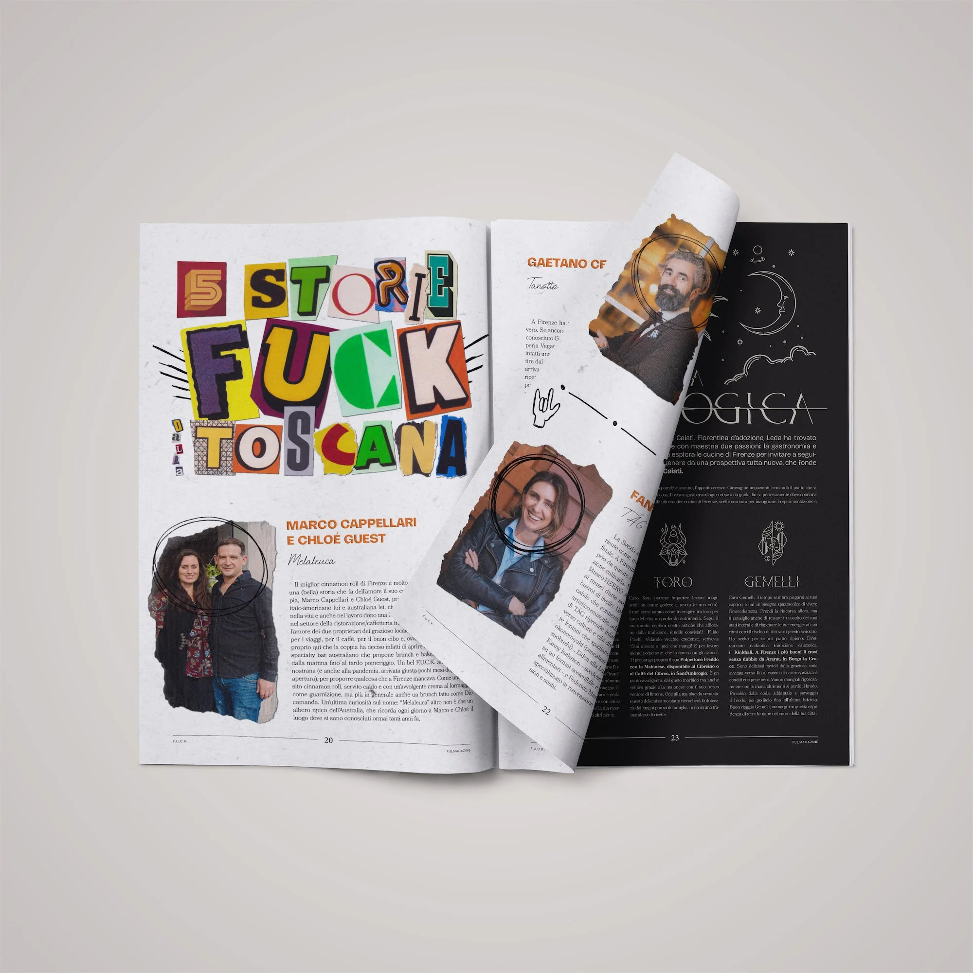 F.U.C.K. Magazine (Firenze Urban Cocktail Kitchen) è un progetto editoriale indipendente nato all’interno dell’ecosistema FUL Magazine, dedicato al mondo food, beverage e alla cultura del bere contemporanea. Non è un magazine celebrativo né patinato: utilizza un linguaggio diretto, visivo e spesso spigoloso, dove grafica ed editoria lavorano insieme come parte dello stesso racconto.